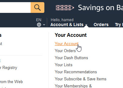 مجددا گزینه Account & Lists را انتخاب کنید و سپس روی گزینه Your Account کلیک کنید .