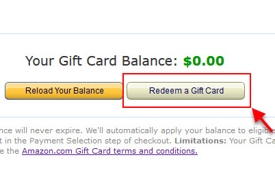 و در نهایت مطایق تصویر گزینه Redeem a Gift Card را کلیک کنید و کد گیفت کارت آمازون خود را وارد کنید .