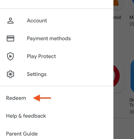 گزینه ≡ را بزنید تا منو باز شود ، سپس مطابق تصویر گربنه Redeem را برنید .
